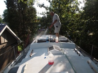 Work begins Work has begun on the jean marie, as you can see the teak cleaned up well and all is in good shape, here we show the start of the scrub down , we will be resurfacing the top and sealing all areas to make it water tight. Share this:TweetLike Loading... Leave a comment Cancel reply Δ