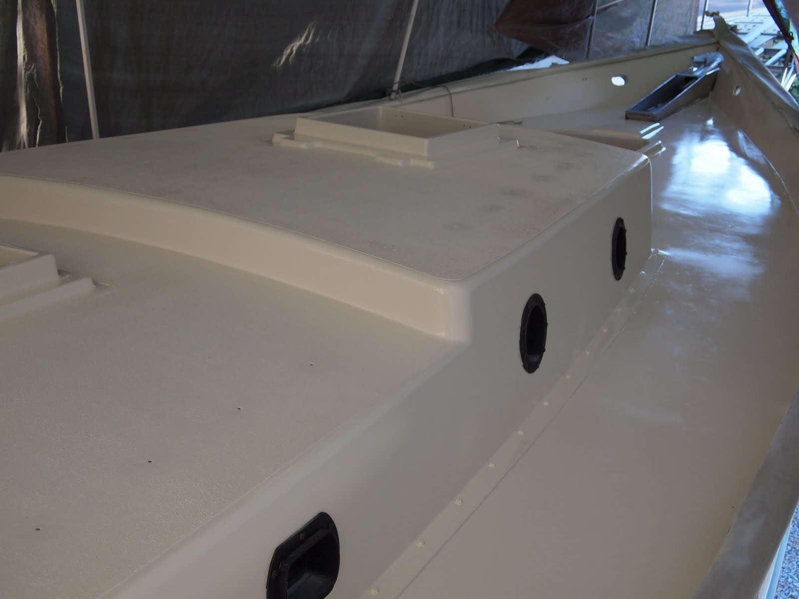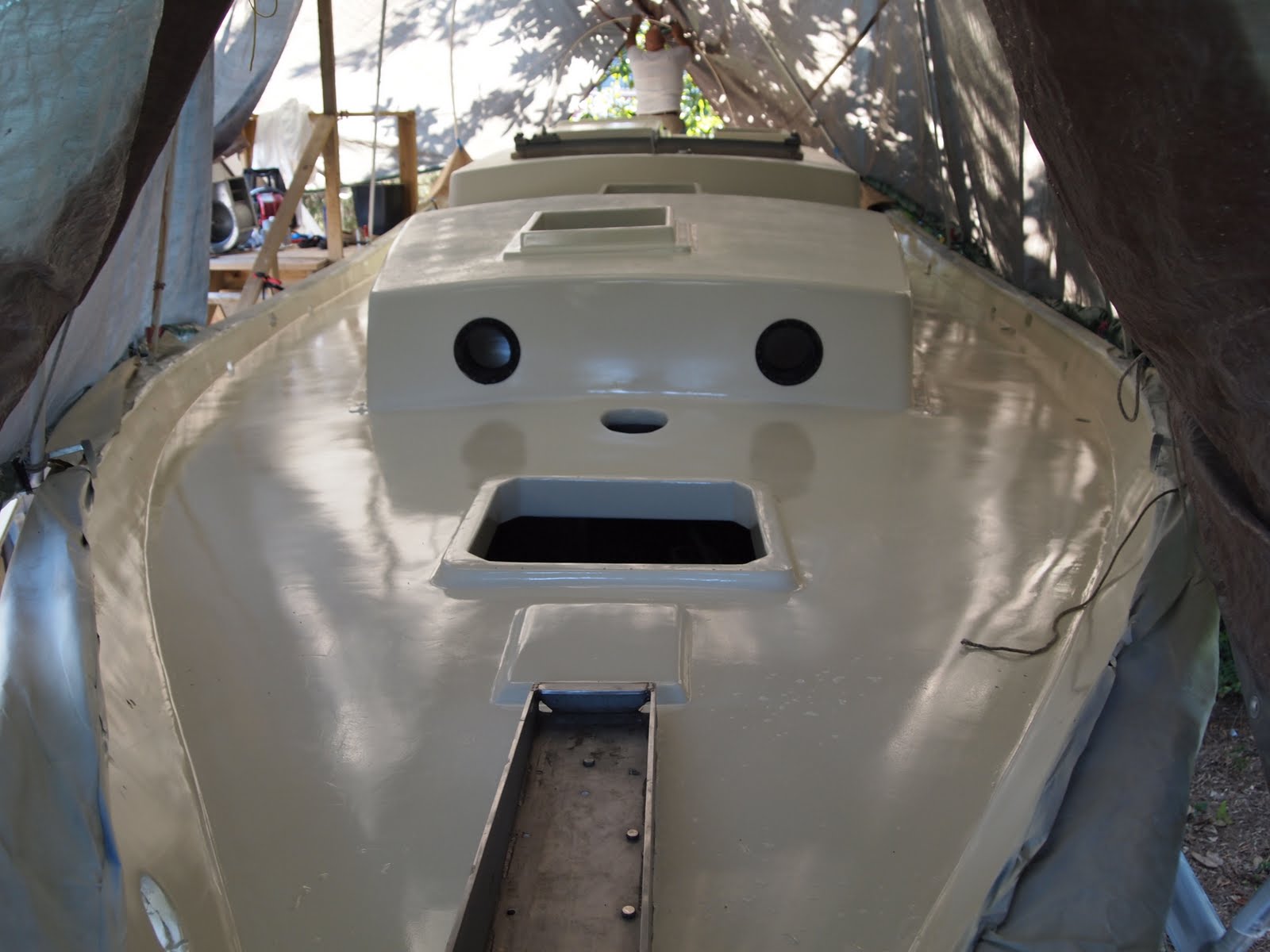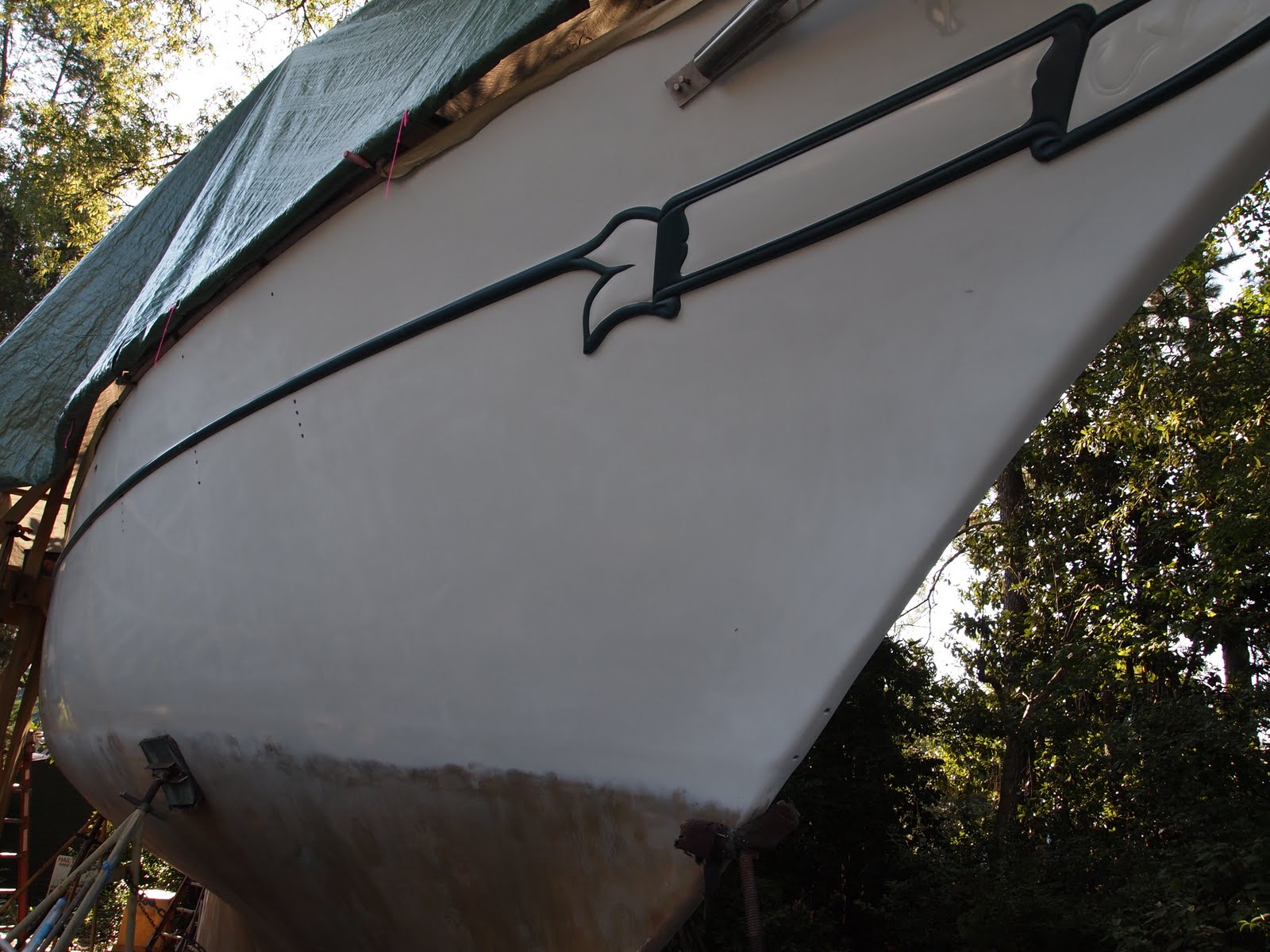 Seems as though we are on schedule. Having the boat painted by october. As you saw in the last post we were done sanding and painting and here are the results. Feeling pretty good right now!