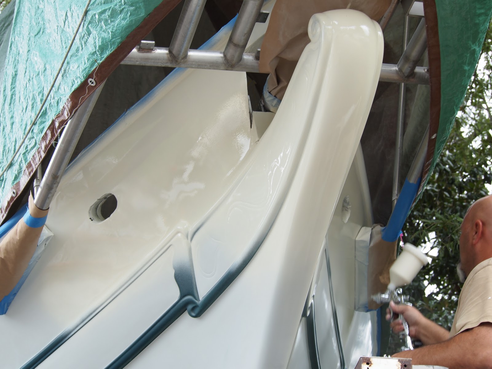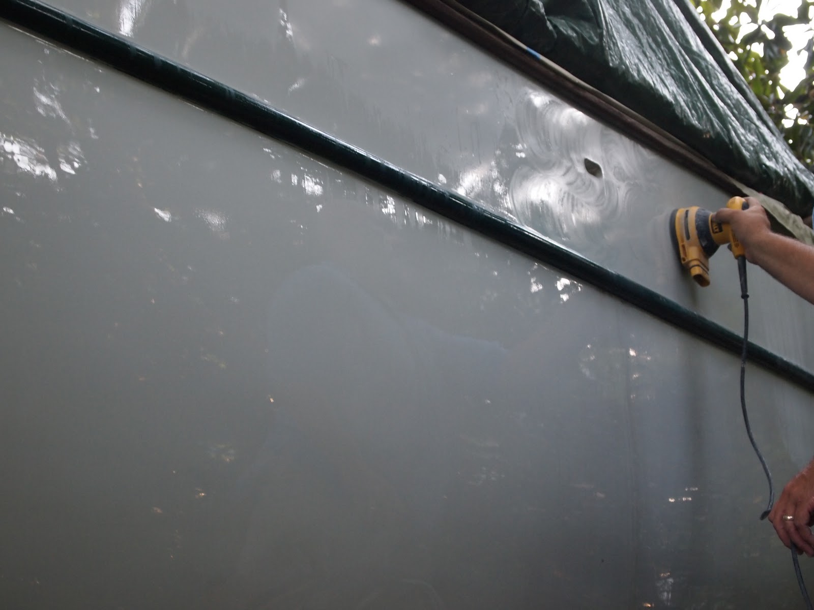 The days all run together now. Our process as you know started with sanding the hull and fairing.