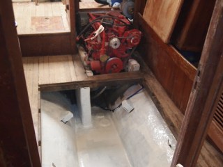 fuel tank removed and fresh coat of bilge paint .