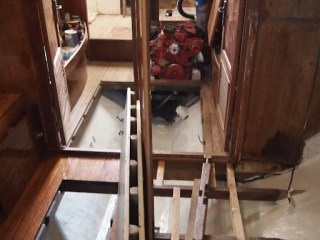 Below are pictures showing the progress in the V-Berth adding more storage compartments to pulling out the septic tank and fuel tank and painting the bilge. Progress has been slow due to house projects going on at the same time . But we are back on the boat full steam ahead . I hope .