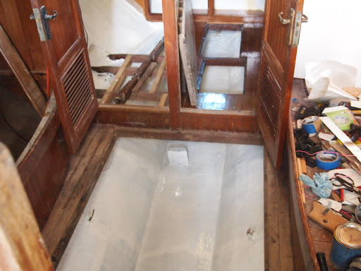 Below are pictures showing the progress in the V-Berth adding more storage compartments to pulling out the septic tank and fuel tank and painting the bilge. Progress has been slow due to house projects going on at the same time . But we are back on the boat full steam ahead . I hope .