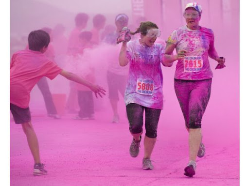Burt is also at the ripe age of 45 being 6′ and $(/&lbs also has an active life and performs the same job as I. So now we read and were told by a friend whom races sailboats, that we need to strengthen our core..WHAT! Oh he’ll I hate to work out I would rather poke myself in the eye. But in the need to want to do this we said ok. So we walk………….. and walk some more, get a gym membership and now decide we are going to run our first 5k. Ok you can stop laughing now! No really it is called the color run. This is where you run 3.1 miles and during the run while gasping for oxygen people will be lined up along the course at specific areas and they will proceed to throw, chunk, splatter you with colored chalk, so by the time you get to the end you are covered in a rainbow of color.