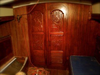 At this point we have sanded ,stained a portion of the salon . we have bead board to install and the floor to do along with some minor adjustments that will change the area to be more like a salon. Photos really do not show how nice it really looks. The light I have to use is a florescent work light so I will try and get some good daylight photos this weekend.