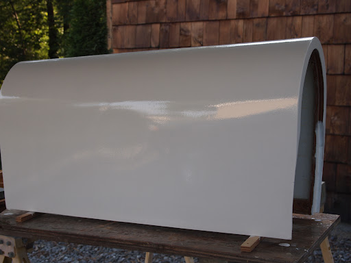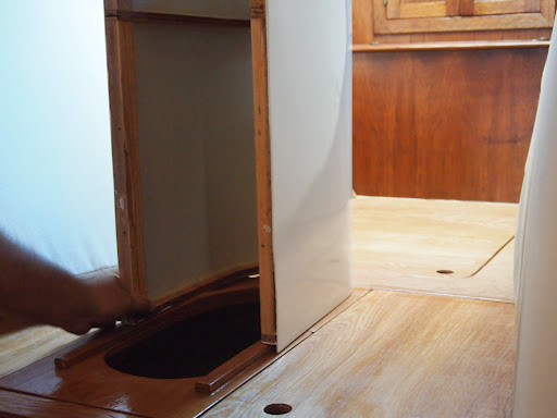This is a cover for the mast in the berth that goes right through the bed. It was made from teak and PVC board with several layers of fiber glass for strength. This cover is really a decoration piece but will serve a few purposes, If any leaks happen around the mast the water goes down to the bilge also I really do not want to lay with the very large lighting rod. ( I know BIG BABY ) So it is mostly a decoration.