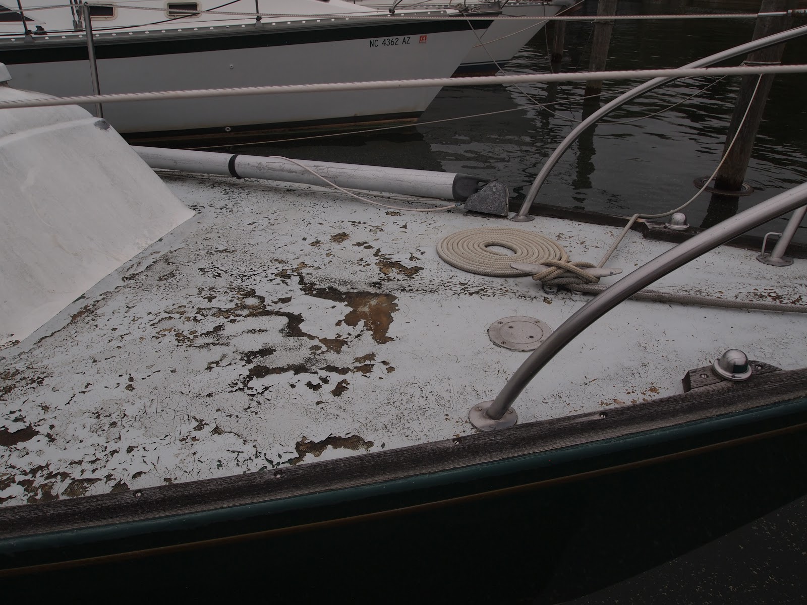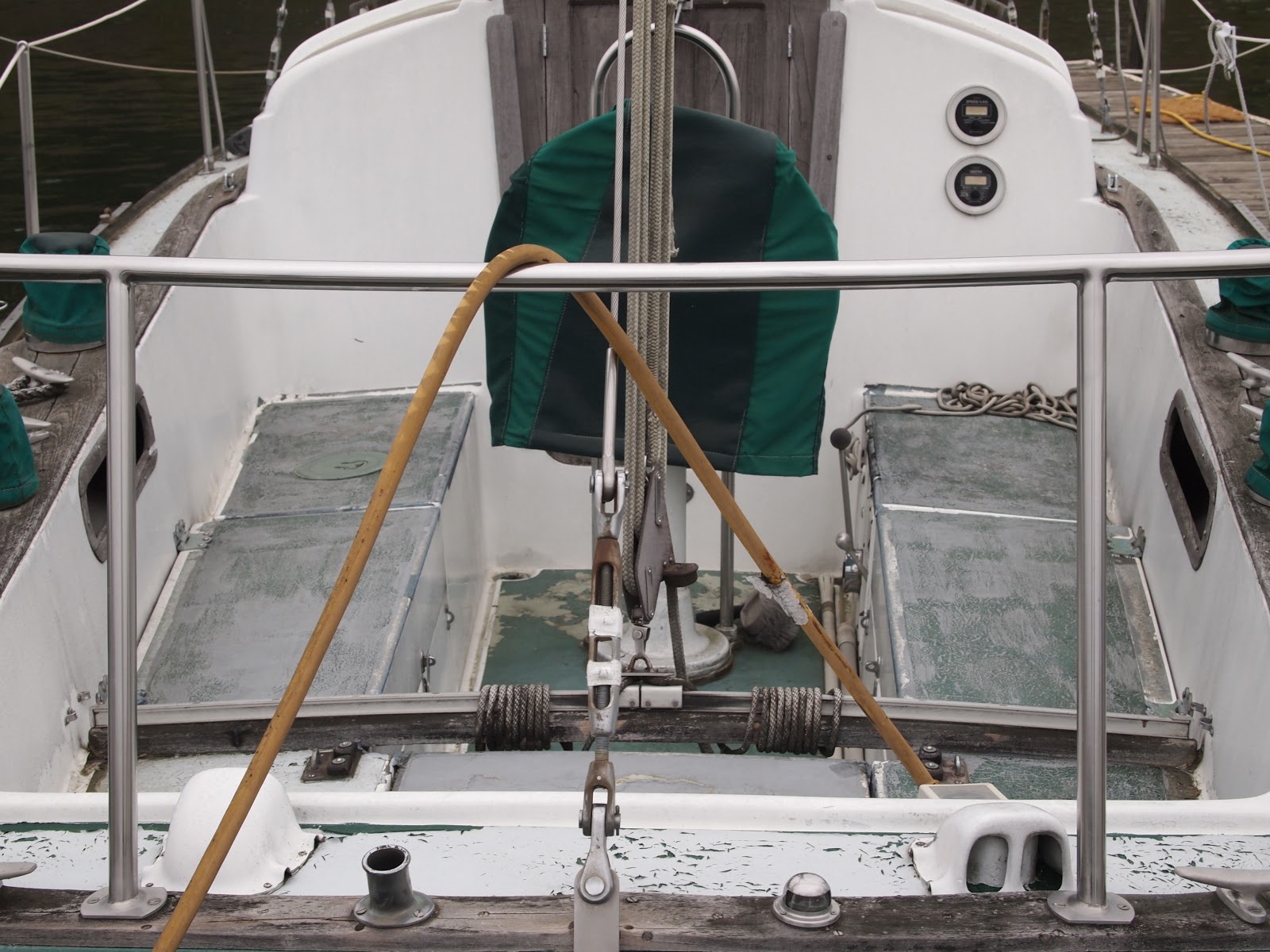 5/4/13 15 DAYS into the project we are fast tracking this boat to not crush anymore time on the refit for the ERISED. Here are some before and after shots, just a little teak work still left to do and epoxy on the hatch lids. After that we will have all the rope replaced, new hardware on the sails. This weekend is sewing time, we have 15 cushions to recover.