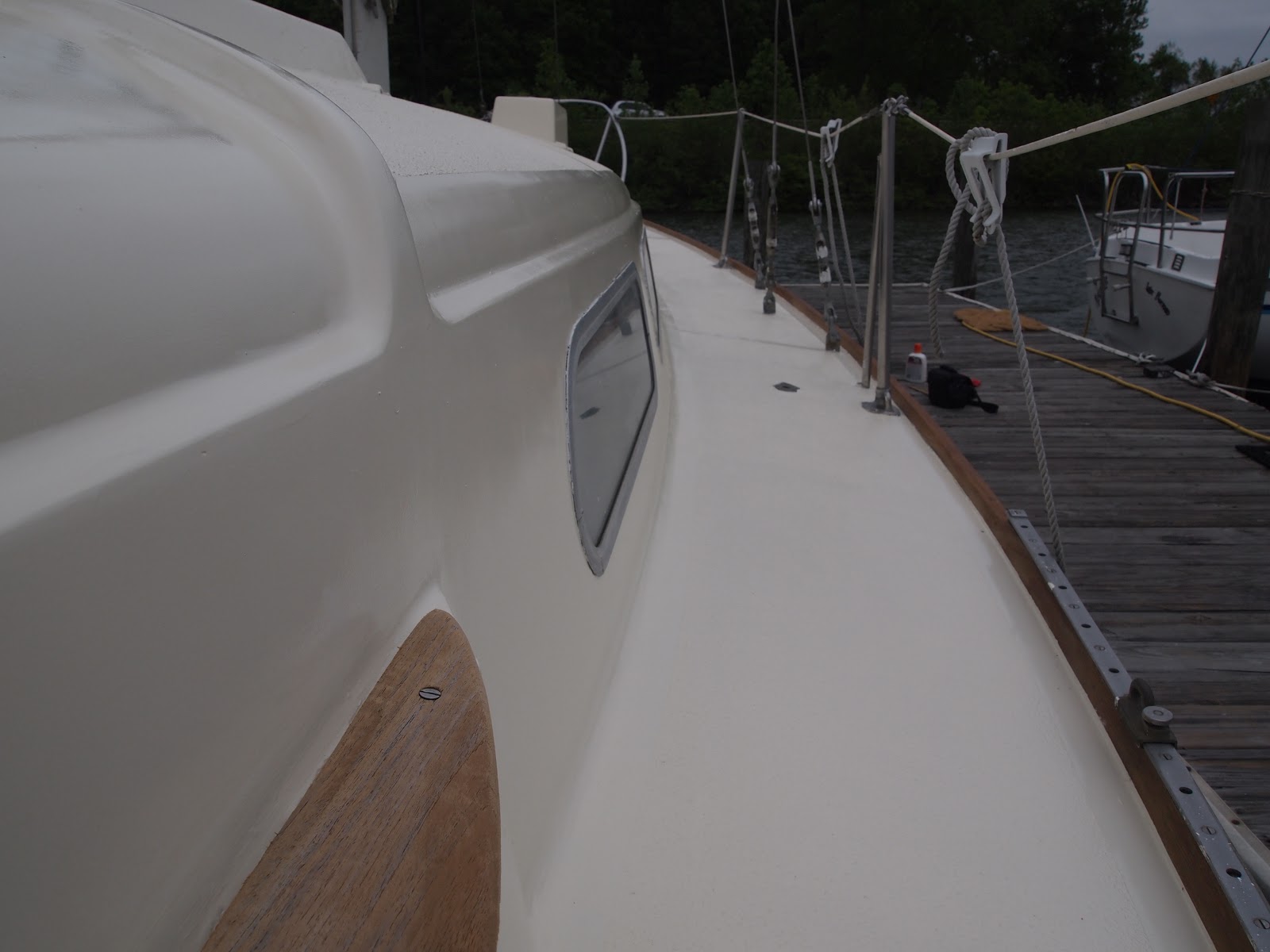 Hey Dan, Well thank you, We know we are going to be here until the last one finishes college which will be next year, And as much as we love the big boat project , we also need a break from it. We work full time on our jobs to come home and work on the big boat until dark or passing out. So the weekends are time away from all of those things and we don't get rusty on the sailing part. So this is a play boat, quick fix with sanding , fairing, and paint. took out a couple of weeks on the big project. But well worth it. I hope your project is going well, and your sailing days come sooner than you think. ~~~ /) ~~~