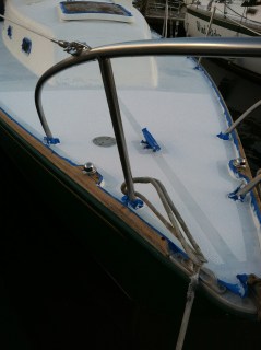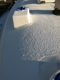 Below we have sanded, completed the fairing, sanded again and covered with primer and now the kiwi grip going on. after this has time to set we will be adding the first of the top coats.