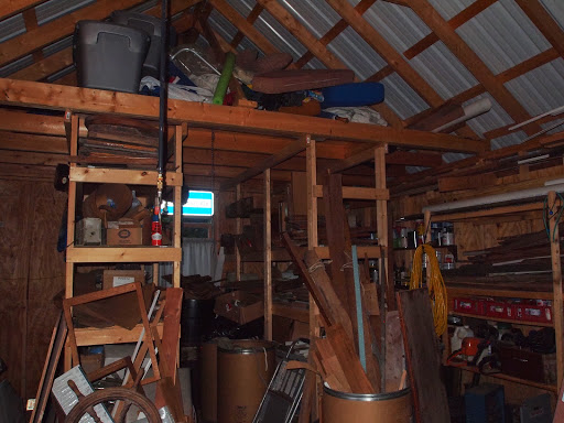 Shelves and shelves of stuff, and a good portion not useful , Burt just thinks it is cool to have.