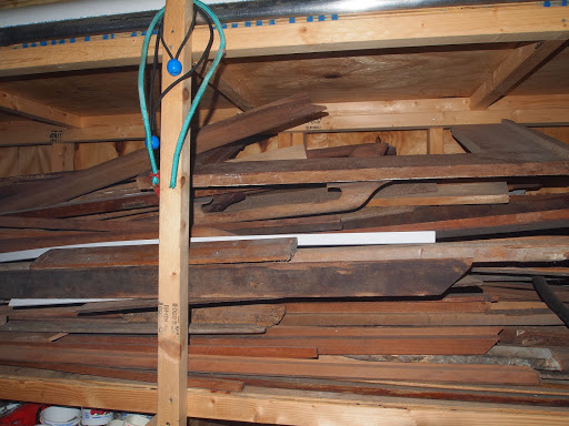 When we got this boat the decision to move it to the house was a risky idea. We live in town just a block from City Hall. I know Right! Well just so happen this town is so sleepy that this has turned out to be the cool thing. Lots of on lookers and visitors. Check! Lets get started. Now that building we built a 32’/16′ with a double loft turned out to be just big enough to house all of the materials. And did we fill it up, We have so much teak and marine plywood along with so many small parts, large parts and so much in between. And most of this was given to by the last owner in hopes we would actually complete this project. He and his father had been collecting things for years in hopes to use them for the refit of this boat. I am very happy that we were the people he had been looking for to sell the boat too. And even though he being a racing sailor we have had our differences on the design, but an agreement has been established. Now our distance from work area to boat is about 20′. This has been wonderful , but it also has its downs. It can be very easy to say Im tired and stay inside or just go out sailing. But the clock is ticking and progress needs to get back in gear. I will say a portion of the slow is money. I can remember when a $1000 order would be a back door full of packages, but now in the project a $1000 might get us one box. Bummer, So lets say we have reached the high end side of the project. But we do have plenty of small things to address, so I will be posting some of the small detailed issues, and at the same time we will be installing all new electrical and the rest of the plumbing. So back to work and enjoy the photos of our work zone, Until next time my friends.