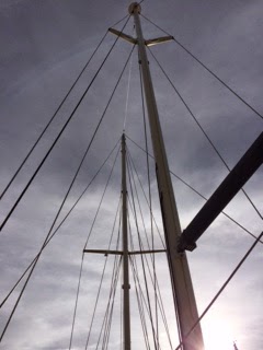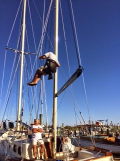 Winter can be a lovely time of the year, but when your not in a warmer climate it sucks! Living on the boat finishing out the refit can be exhausting. We were hoping to start some sea trials before winter, but that may not be happening. This past weekend I went up the mast and rigged the last line, and one of the funniest moments came about from this last rig. Burt has been the splicer for all of the ends and so with that, our last line was too short to reach from the deck for splicing. So our only option was to hoist Burt up the Mizzen a short distance to splice the line. This was so comical watching Burt and the bosin seat wrestle. Once his feet came off the ground the laughter began so much so I did not have the strength to hoist him up 10′, I had to recruit our good friend “Mayor Steve” to winch Burt up while I snap pictures with my phone rushing to show the Family. It was a great moment.