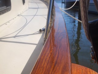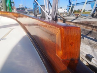 The finishing touches to the teak turned out beautiful. Yesterday I put on the last layer of a two part polyurethane so fingers crossed. After working on several boats over the years we hope we have come up with a better and stronger longer lasting finish on the teak.