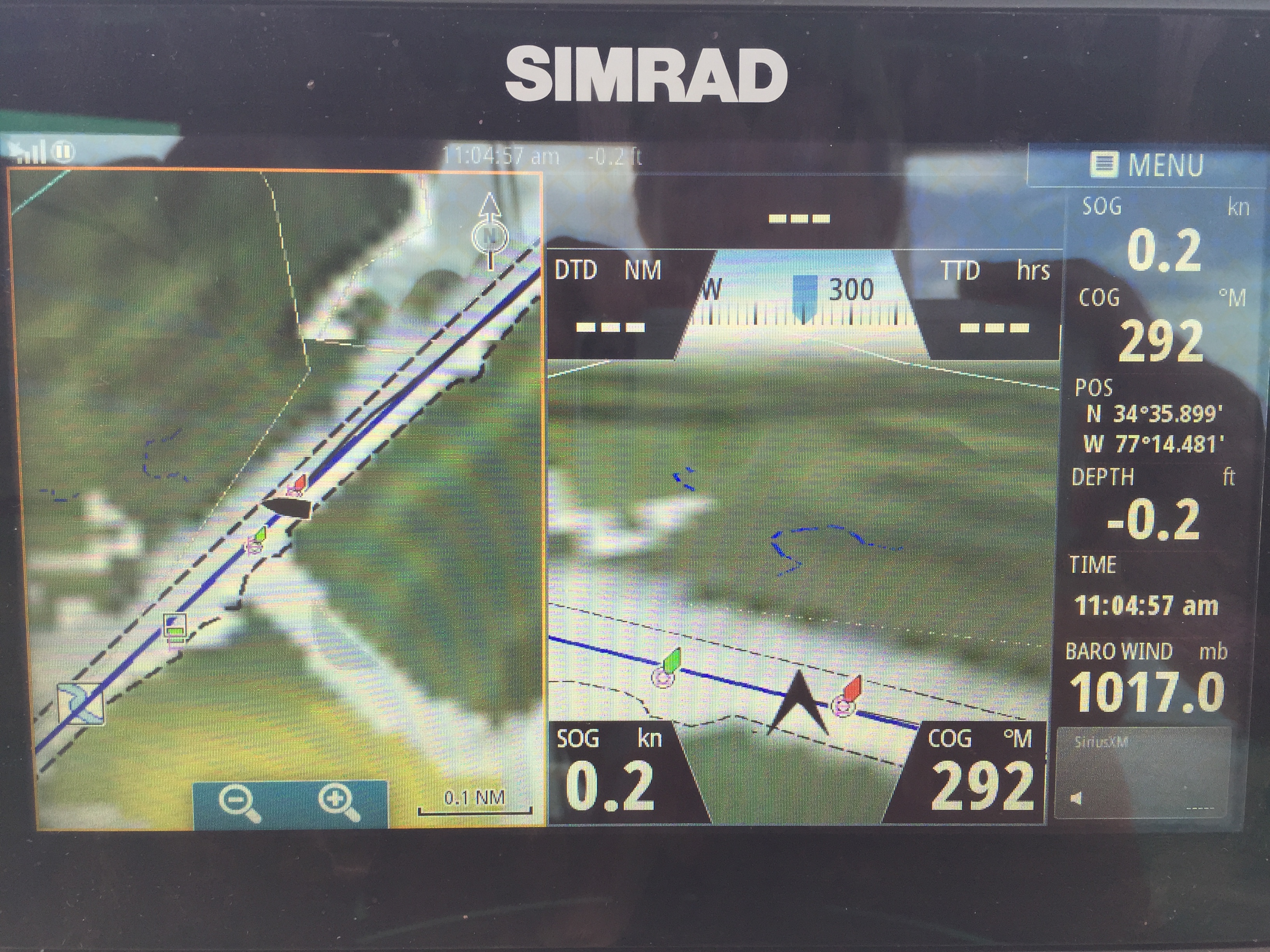Active Captain has now become my best friend! And I too have made my contributions to the notes. As our day goes traveling on the ICW it becomes a water highway that is in need of help just the same as our road systems, they both seem to be neglected in the same manner. As we round Onslow Beach there are markers that are for the channel but have now become a Zig Zag maneuver that you should perform with precision 2-3′ off and you are doomed. And so we were the ones who missed it by a couple of feet.